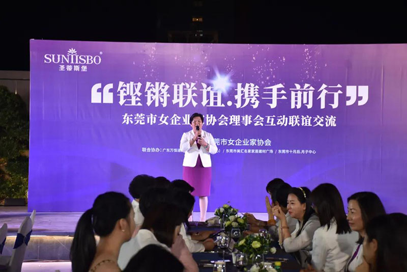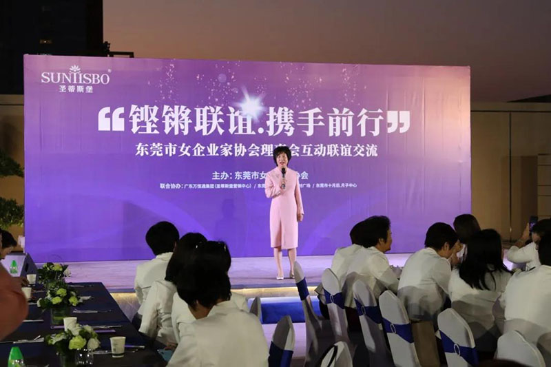 接下来,东莞市女企业家协会理事会会长叶小红女士上台发言,她表示非常感谢NG娱乐集团举办此次联谊交流会,同时,对我们的产品和企业文化给出了很高的评价。她号召东莞市女企业家协会以后要更多的举办此类交流联谊活动,以此增进会员企业之间的联系和了解,为未来进一步交流发展开创新局面!她希望我们能携手同行,强强联手,共赢未来,共创新辉煌!